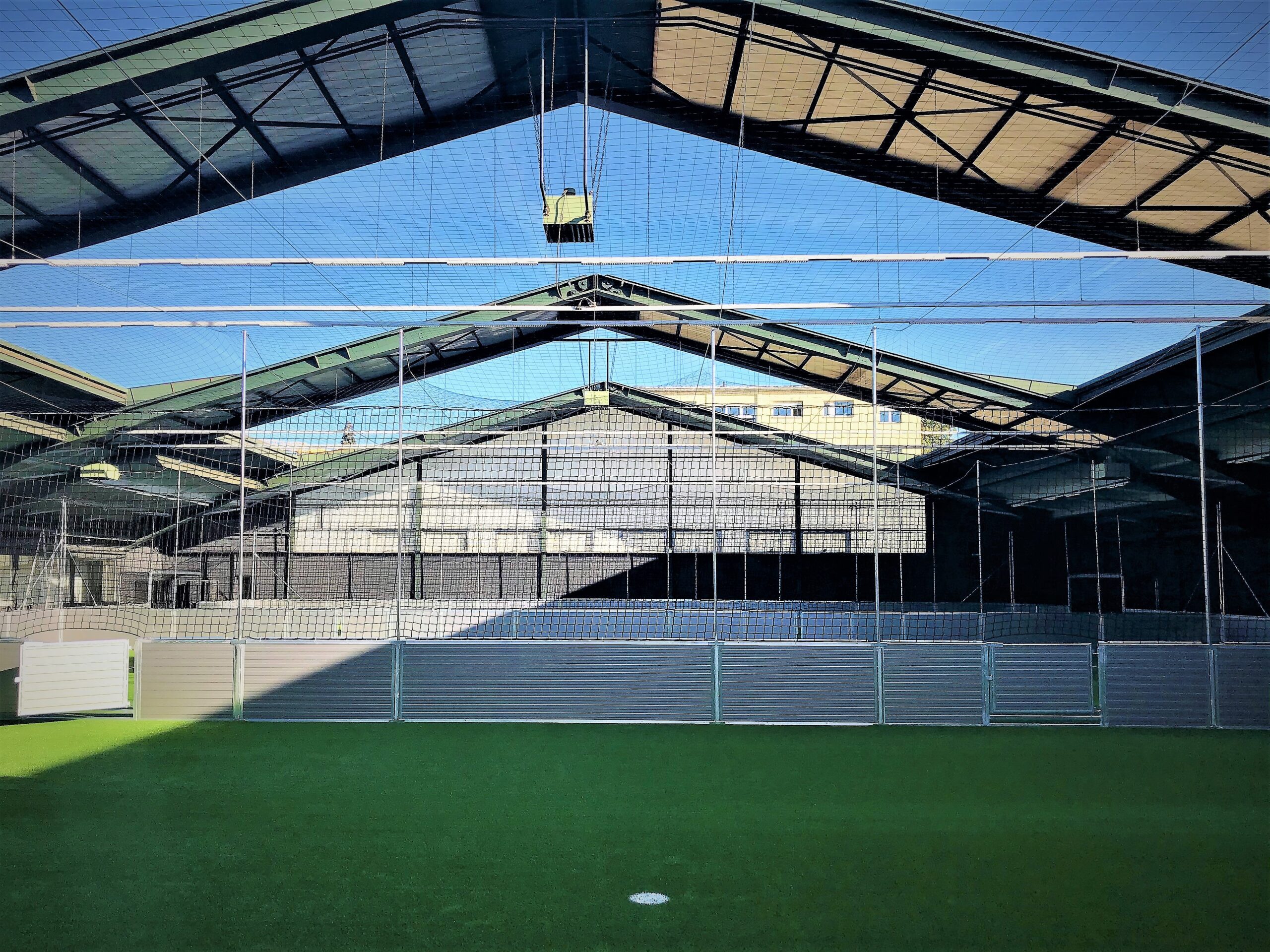 Spezial: Freihängende Dachnetzkontruktion. Mittelbanden können entfernt werden so entsteh eine Feldgrösse von 45m x 30m