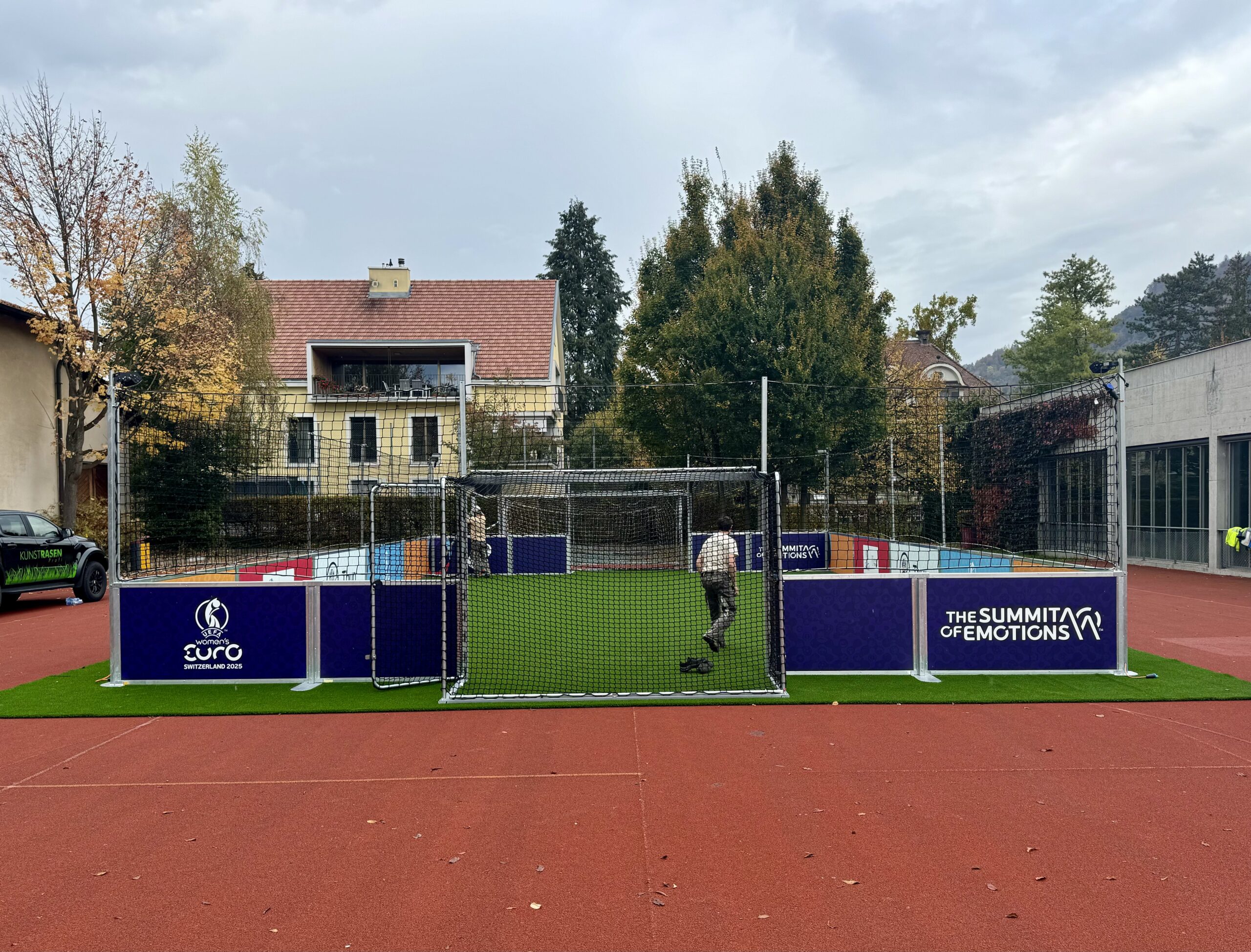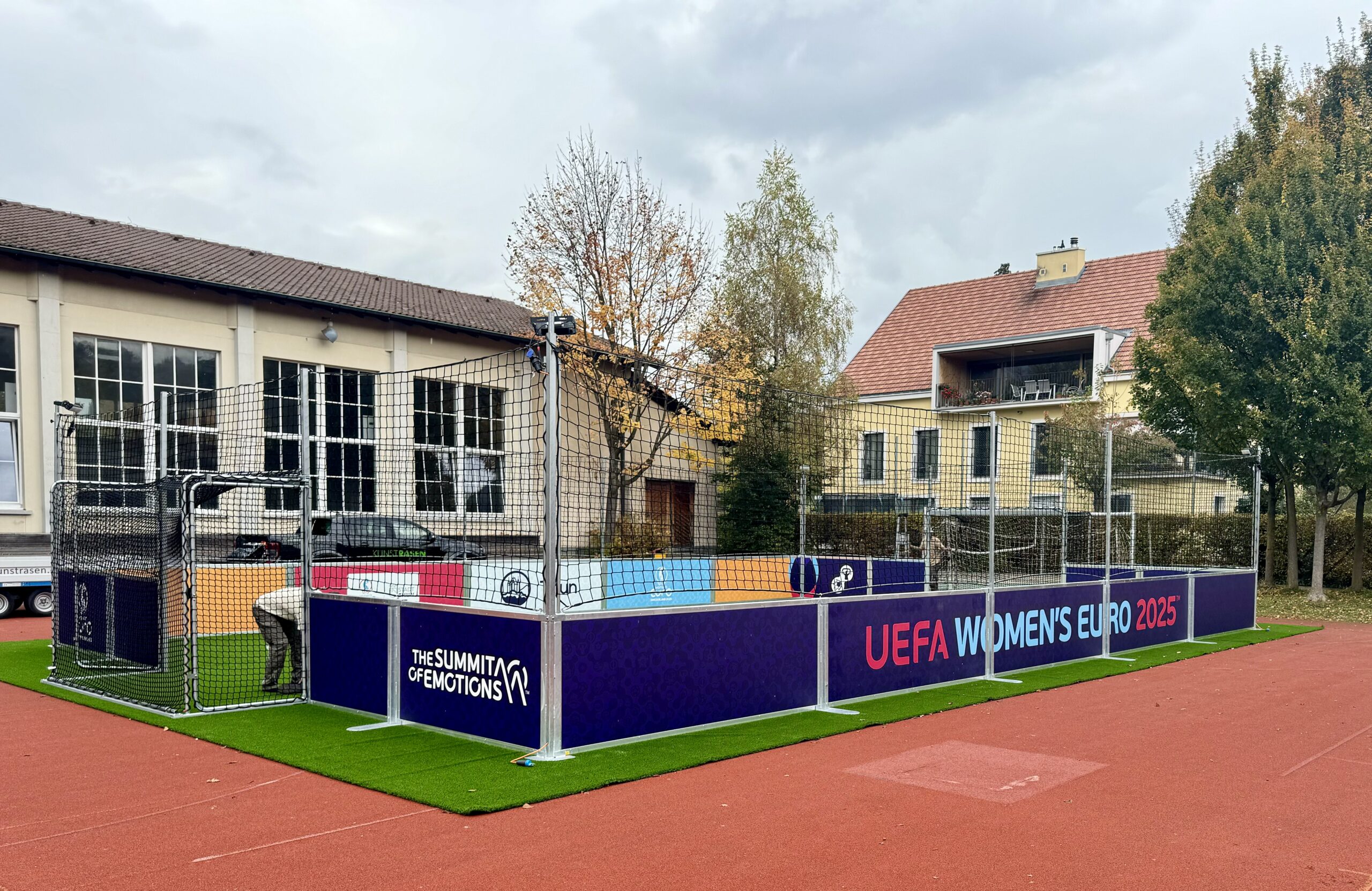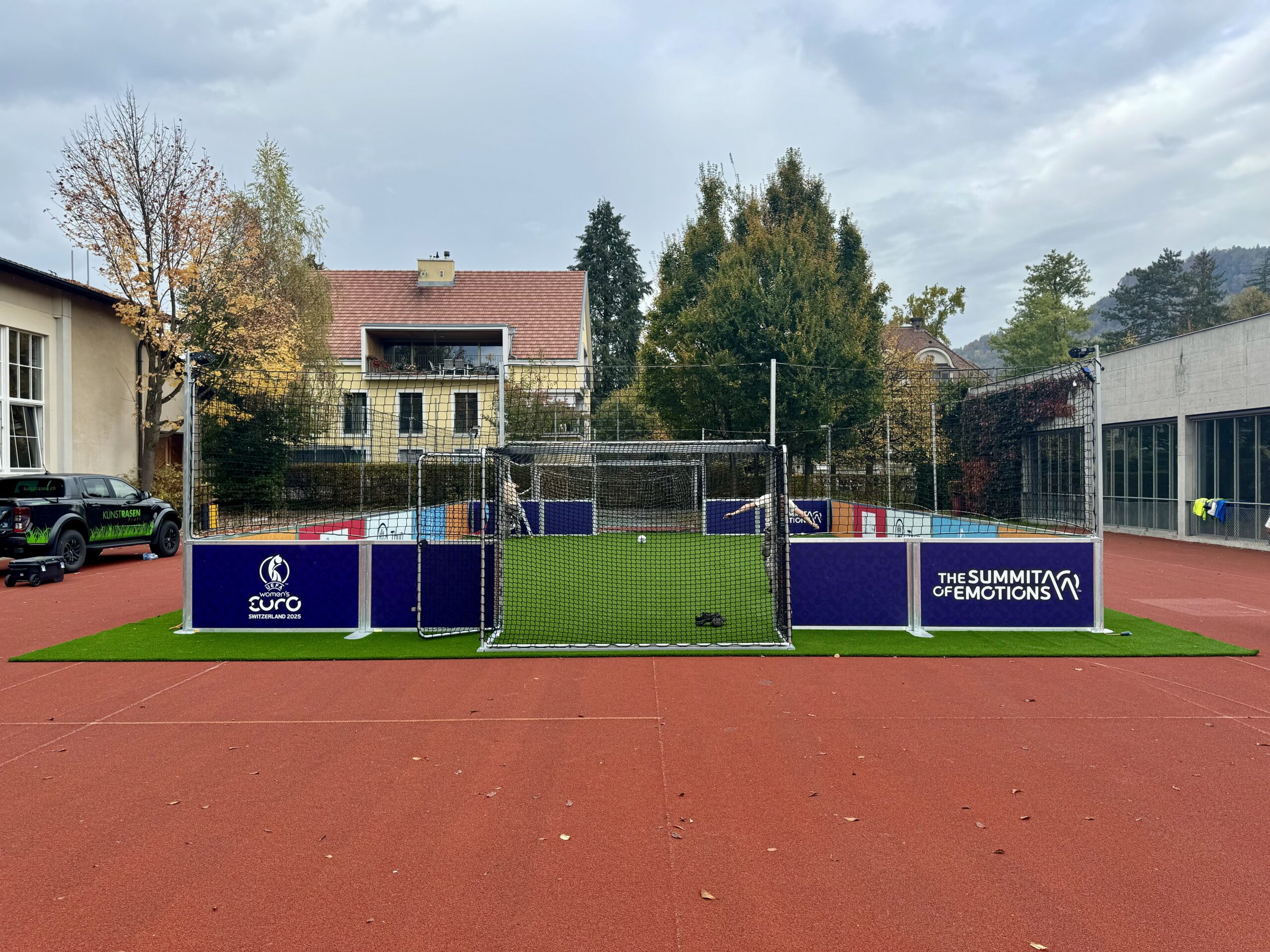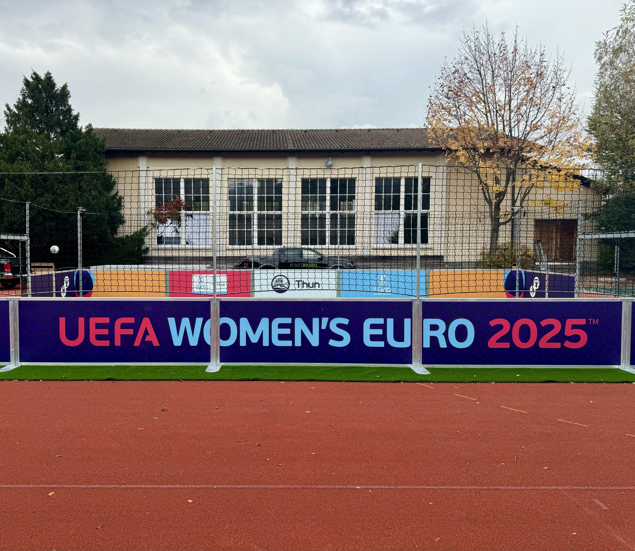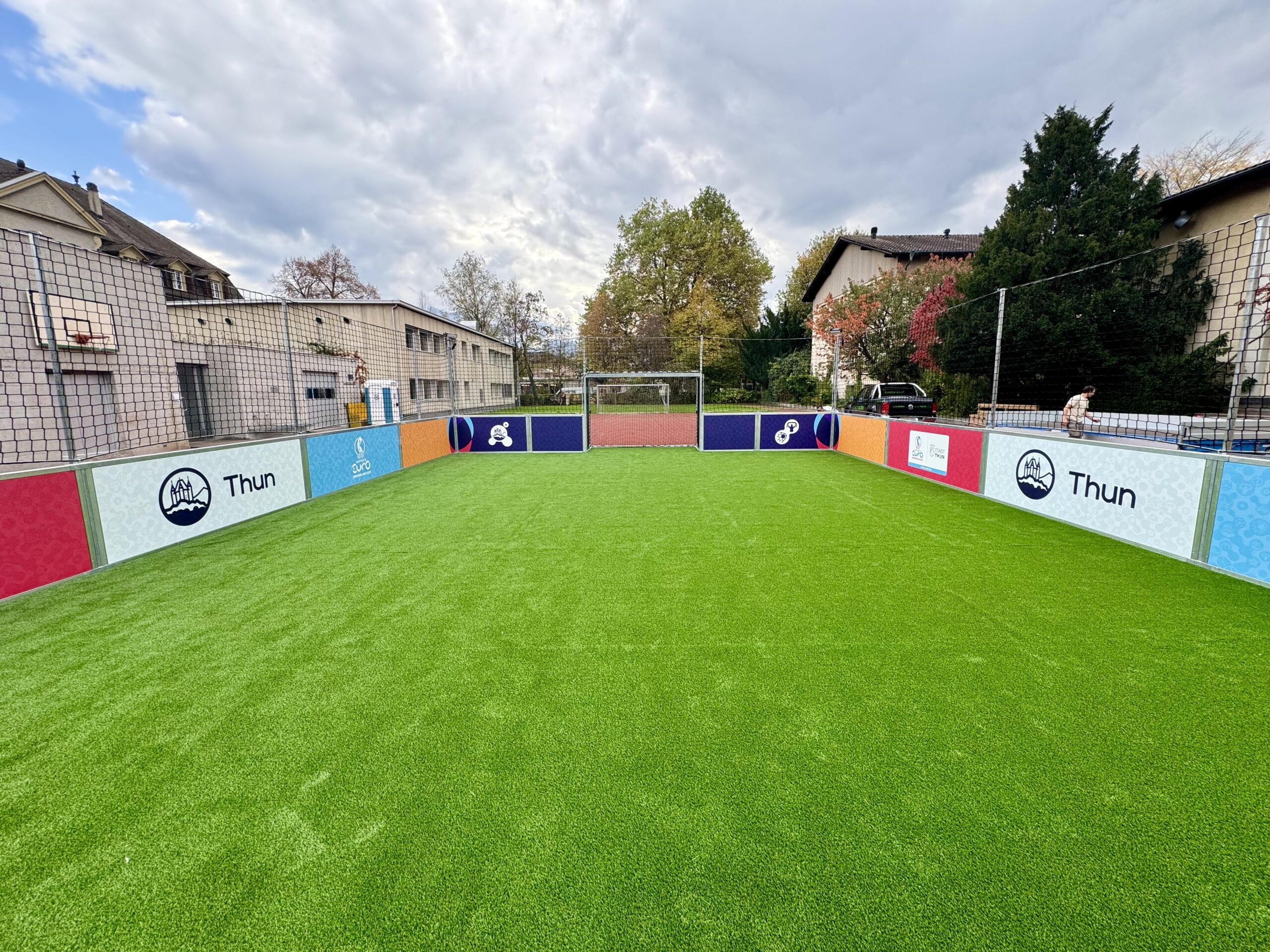 Spezial: Mobiles Spielfeld mit Kunstrasen welches im Rahmen der Womens EM 2025 als «Botschaftsfeld» in diversen Gemeinden im Raum Thun aufgestellt wird.