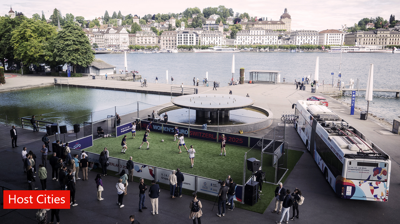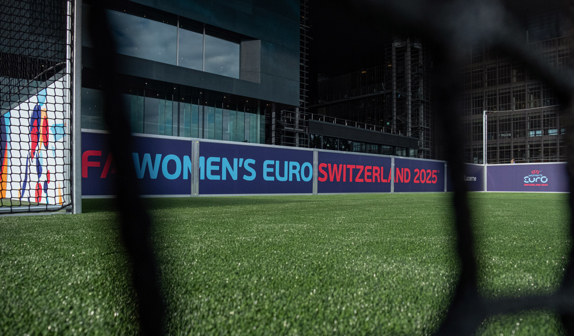 Spezial: Mobiles Spielfeld mit Kunstrasen welches im Rahmen der Womens EM 2025 als «Botschaftsfeld» in diversen Gemeinden im Raum Luzern aufgestellt wird.